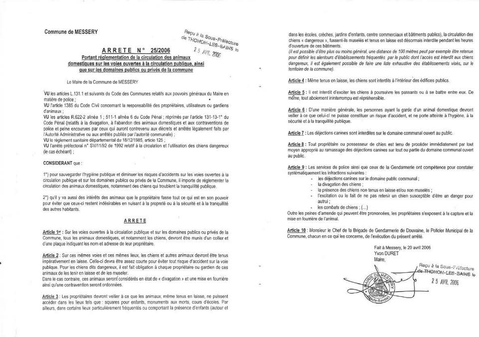 - En tant qu’habitants de Messery, nous souhaitons plus d’informations de la mairie. Pourriez-vous nous communiquer le nombre de contraventions données et la nature des infractions en 2025, et notamment celles en rapport avec les déjections canines et les chiens sans laisse ?
